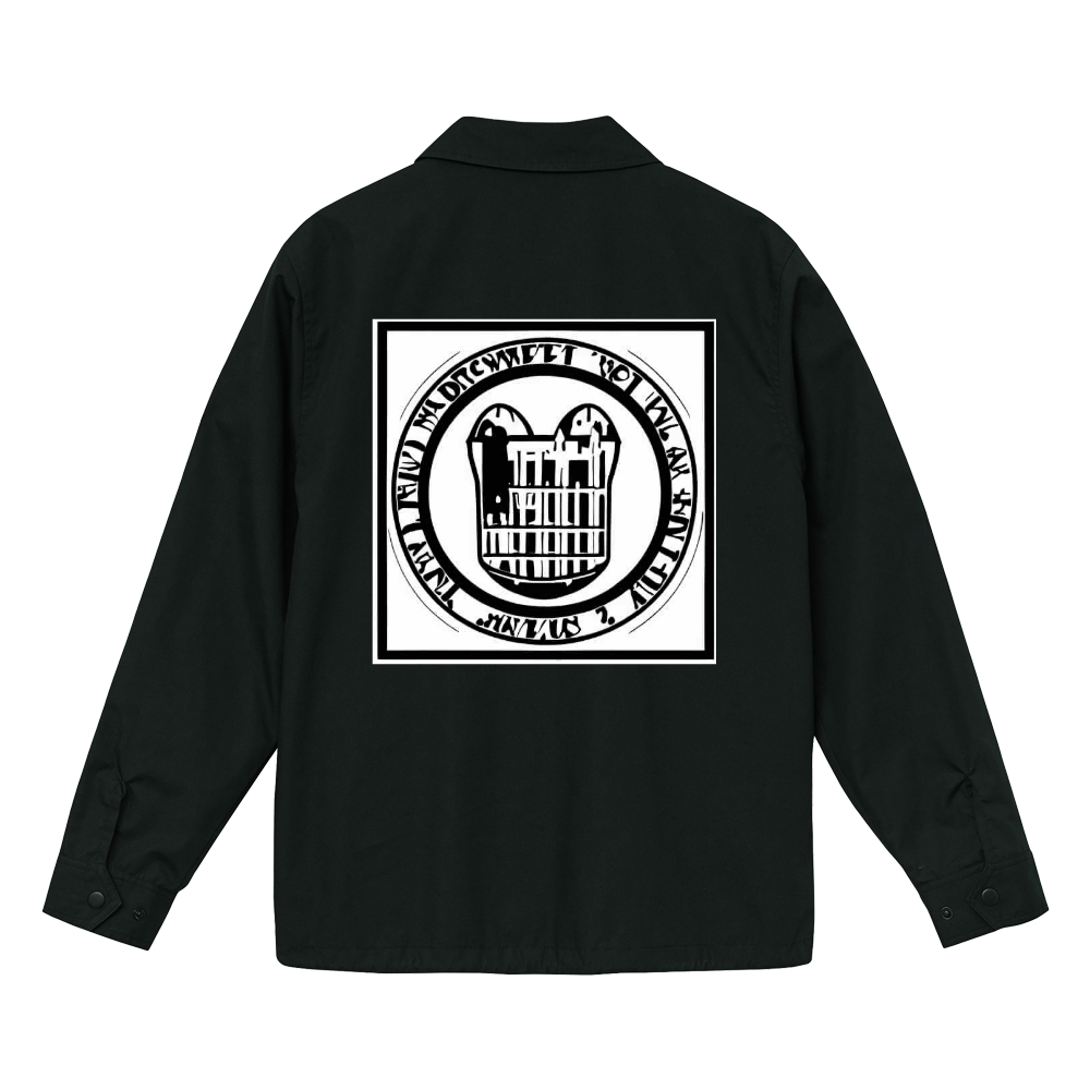 背中に白と黒でデザインしたエンブレムを貼り付けたシャツです。少し厨二心をくすぐるものですが普通に着ても違和感はないと思われます。